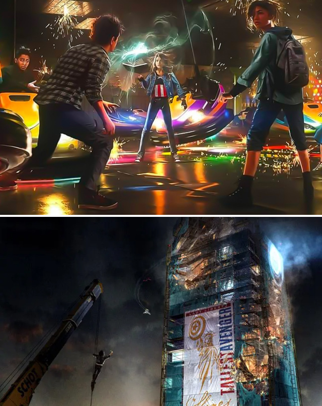 緊接著一閃而過的畫面,注意到星型傳送門將把他們帶往另一個手繪動畫宇宙。兩人的服裝風格也隨之改變。很可能是多重宇宙之間開始失控,導致連美國女士都無法掌控。