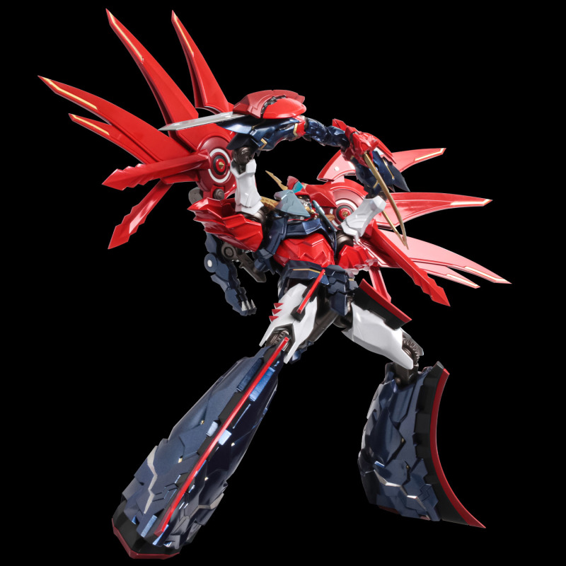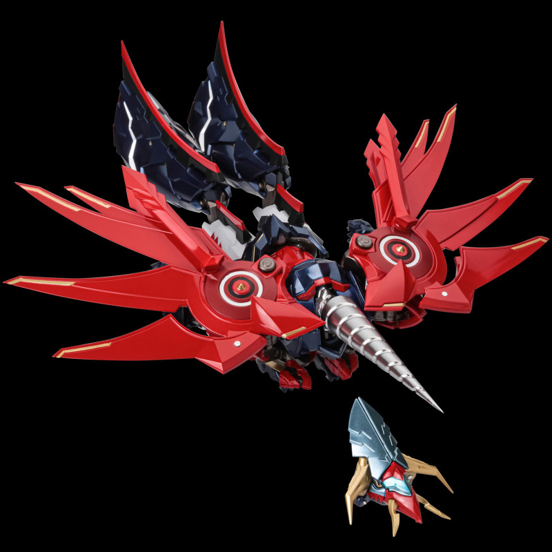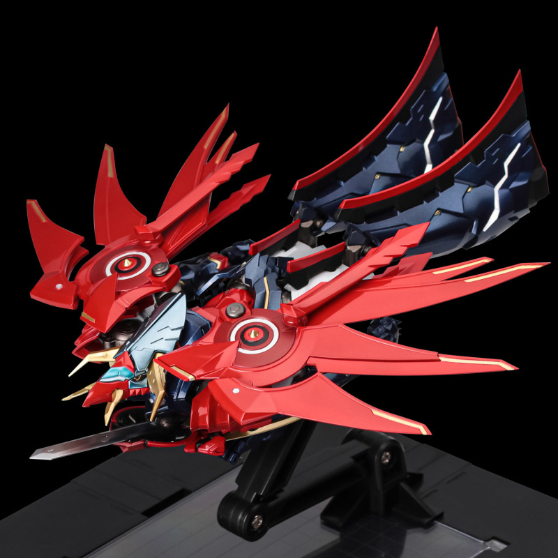 其中雙翼零件採用全新原創設計,翼部由多塊零件構成具備展開機構,也能運用可動支架將雙翼移至機體前方,更再現變形為飛行形態「GOD BIRD」的機構,頭部能換上鑽頭零件再現封印的強化武器「GOD BIRD HEADCUTTER」。