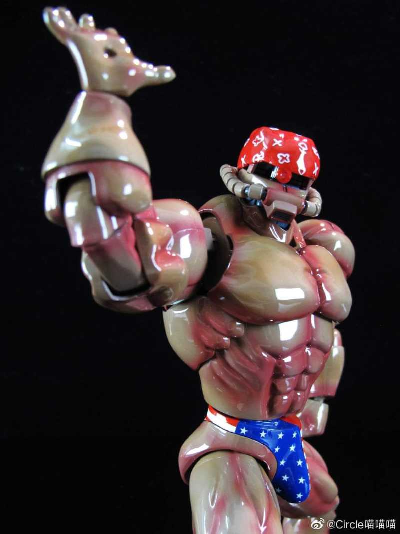 近日來自微博的網友@Circle喵喵喵,發表了自己改造的 Figure-rise Standard蕉♂ 克(FRS 蕉♂古 ),大膽還原香蕉君全身精壯的肌肉線條與特色的香蕉三角褲造型,結合在戰鬥中忘了戰鬥的薩克頭部零件,完美再現薩克的強度由駕駛員決定-「那個男人駕駛自己的機體回來了!!!」