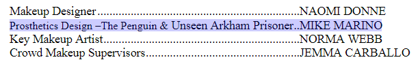 ▼貝瑞·柯根化妝設計的部分則是與柯林·法洛(Colin Farrell)所扮演的「企鵝人」一樣,皆是由化妝師Mike Marino所負責