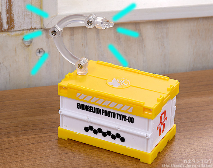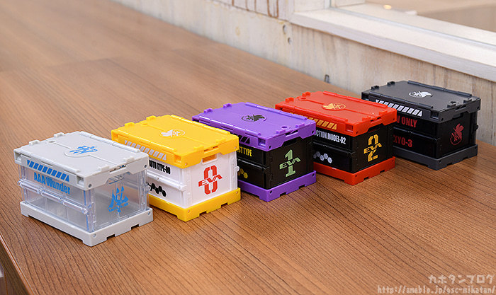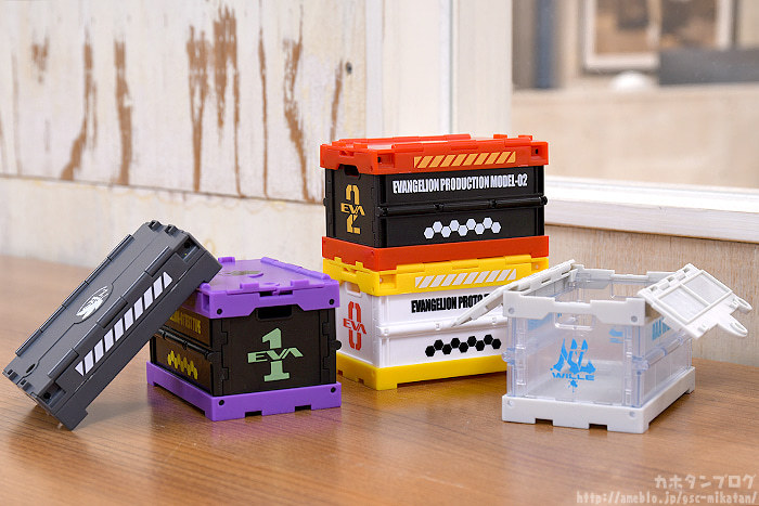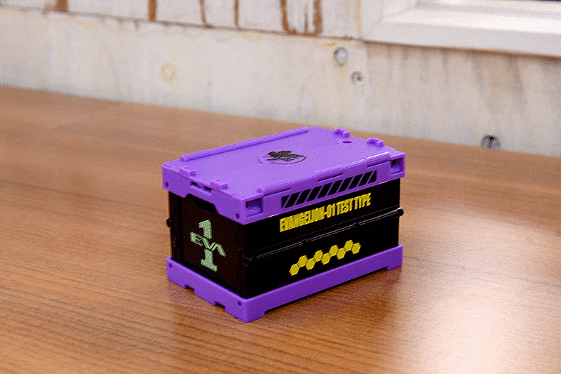 「黏土人專用福音戰士折疊收納箱」,尺寸約45mm,在搭配黏土人的小尺寸中設計有與實際收納摺疊箱相同的摺疊收起功能,可以用來收放黏土人的臉部替換件等小型零件,也能搭配頂部的支架孔,作為黏土人的台座使用~繼可愛又美觀!本次收錄五款初號機Ver./二號機Ver./零號機Ver./NERV Ver./WILLE Ver.設計,除了在配色上有鮮明的風格之外,細節的機體字樣等也有精緻的表現!