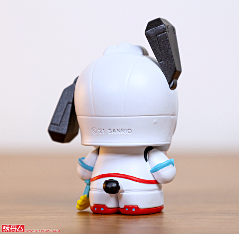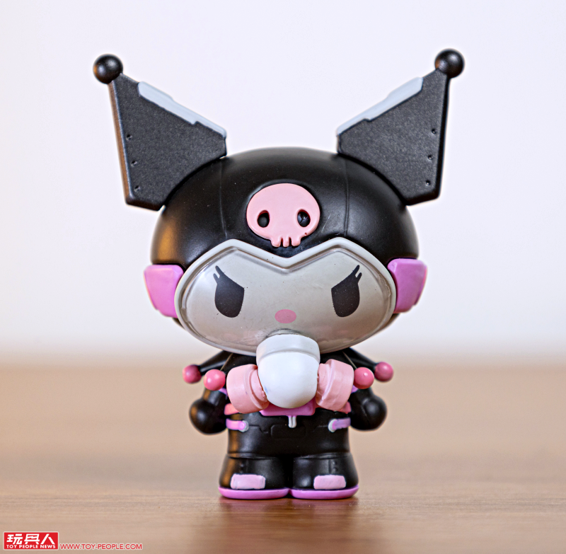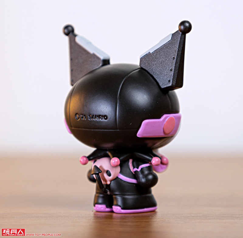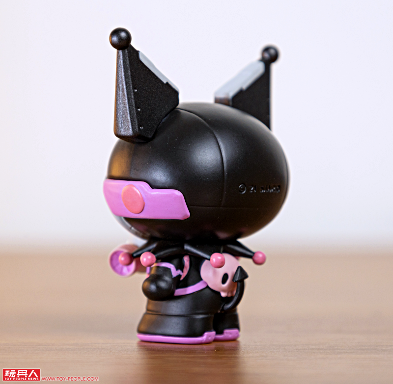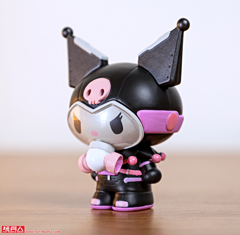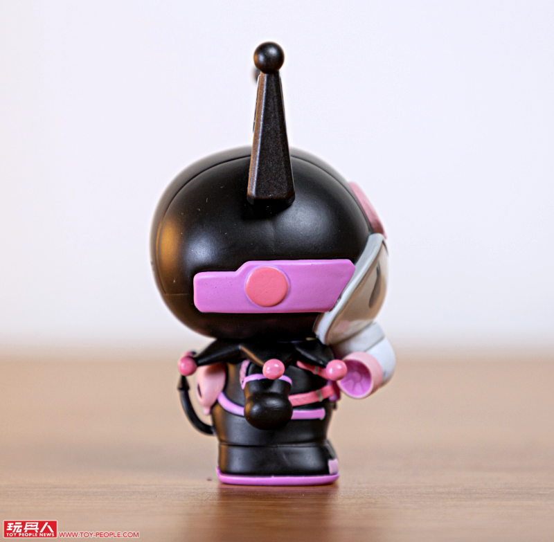 接著是設定上為惡魔兔子的庫洛米,壞壞的眼神、額頭上的粉紅色骷髏頭標誌充分還原,太空衣部分是以黑色搭配深淺不一的兩種粉紅色,值得一提的是,頭盔耳朵部分有厚重的金屬感塗裝,轉過來背面還有小惡魔尾巴。