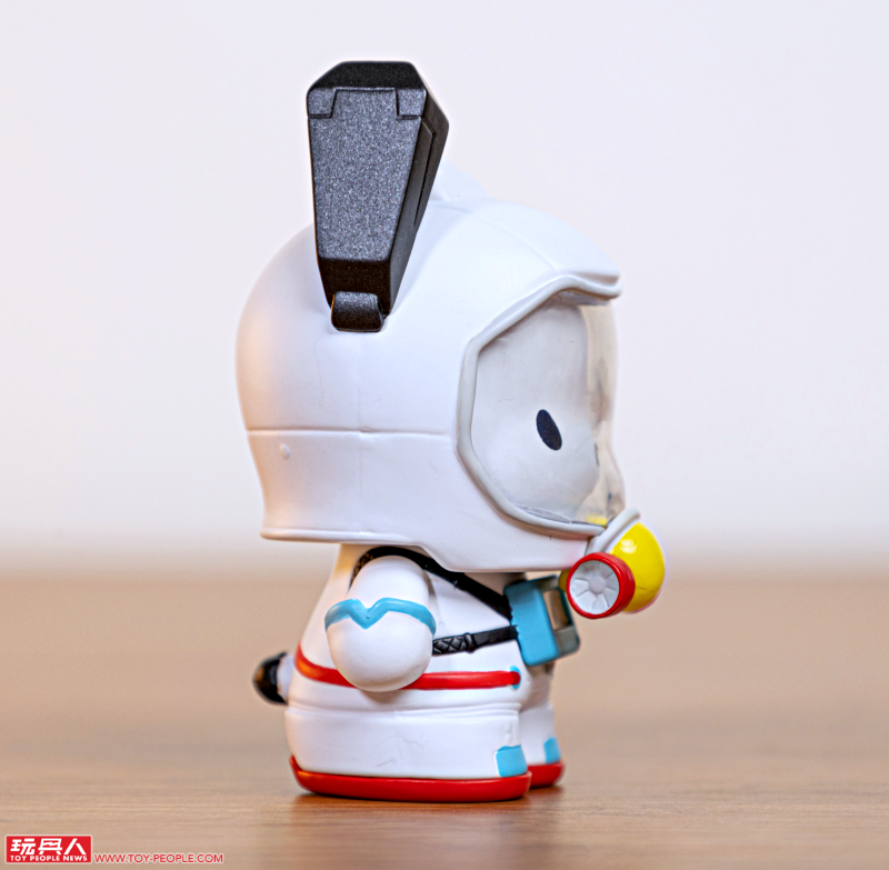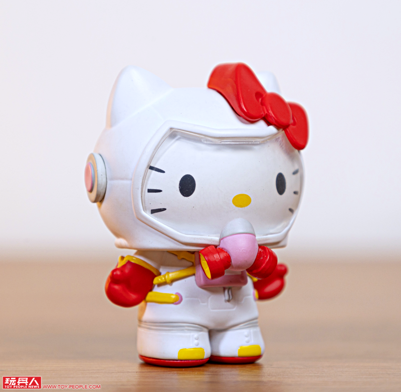 接下來就從各個角度看一下玩具的細節吧~首先從 Hello Kitty 開始,紅白主調的太空衣還在各處點綴著鮮豔的黃色,可說是招牌特色的蝴蝶結依舊超搶眼!