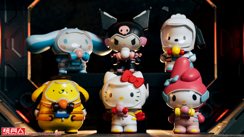 這次的「宇宙探險隊」盒玩是在大約 6~8 公分的高度中、以太空冒險為題重新詮釋三麗鷗家族明星,製作出套上量身打造太空衣的不可動玩具,一共包含 Hello Kitty、大耳狗、庫洛米、美樂蒂、帕恰狗,與布丁狗 6 種款式可以收集,除了各處的細部刻畫以外,還利用透明件製作面罩,增添真實感與層次感,值得一提的是,這 6 款盒玩的重量感都相當足夠,手感回饋都很不錯!