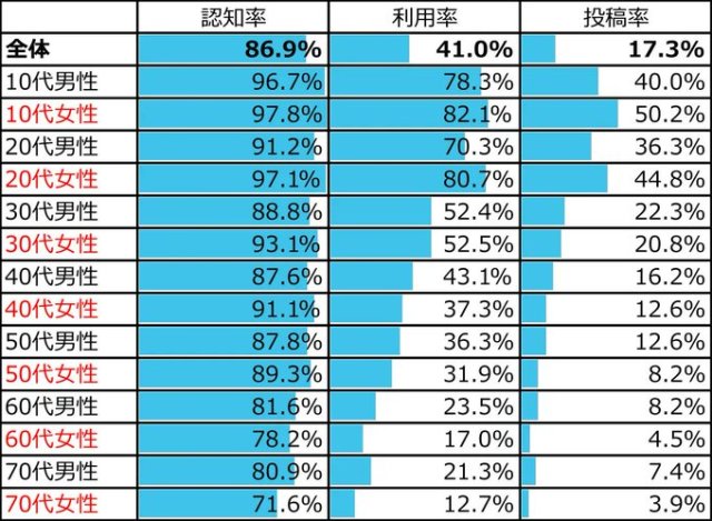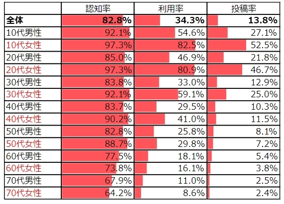 令人比較好奇的反而是,20幾歲的男性只有70.3%使用推特,那他們究竟去了哪裡呢......?