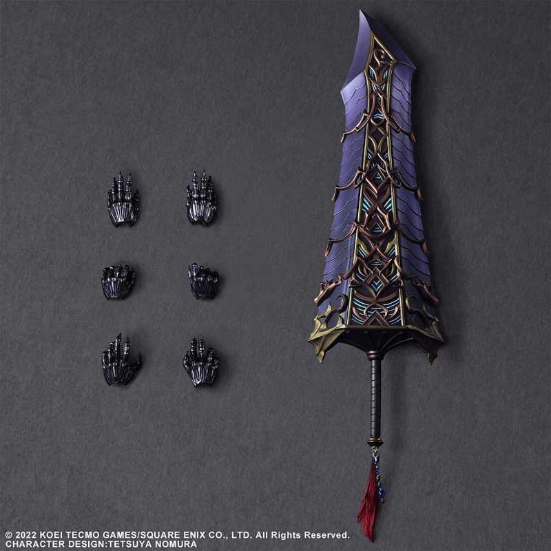 「PLAY ARTS改 傑克・加蘭德」將其全身包覆漆黑鎧甲的魄力姿態立體化,藉由精密造型再現鎧甲、大劍表面充滿災禍的扭曲紋路,以金屬色塗裝金色邊緣與寶珠部位,披風採用紫色布料縫製而成,內藏金屬線可隨意調整形狀,再現加蘭德揮舞大劍的帥氣身影!