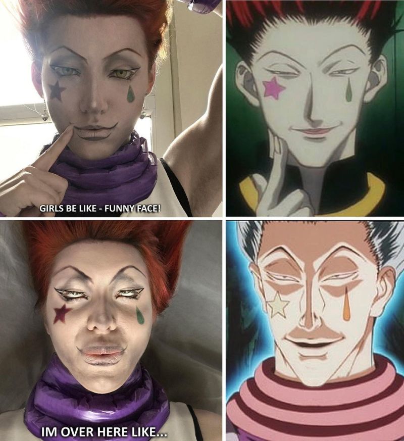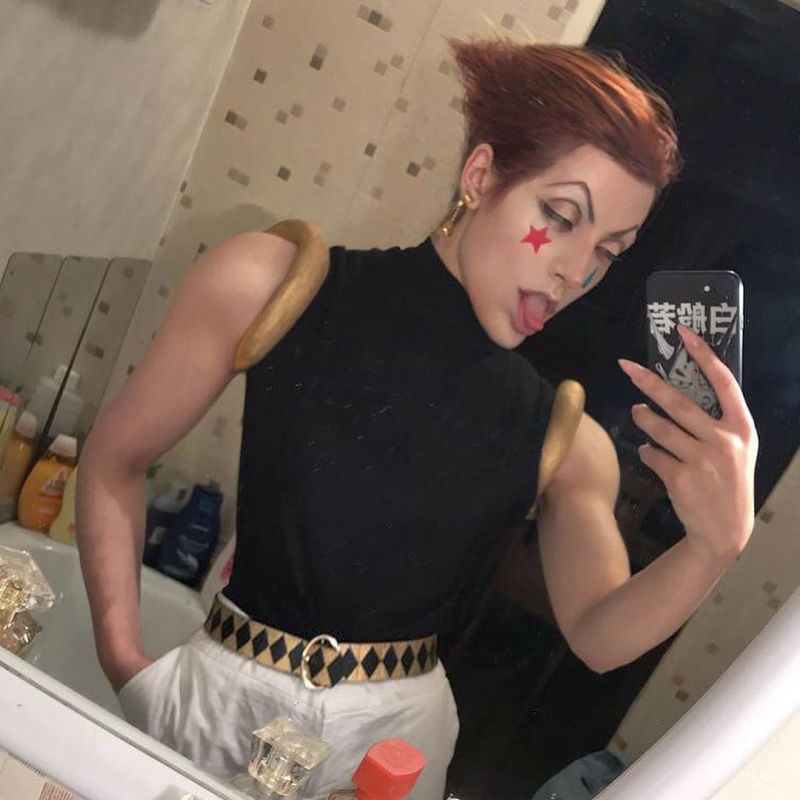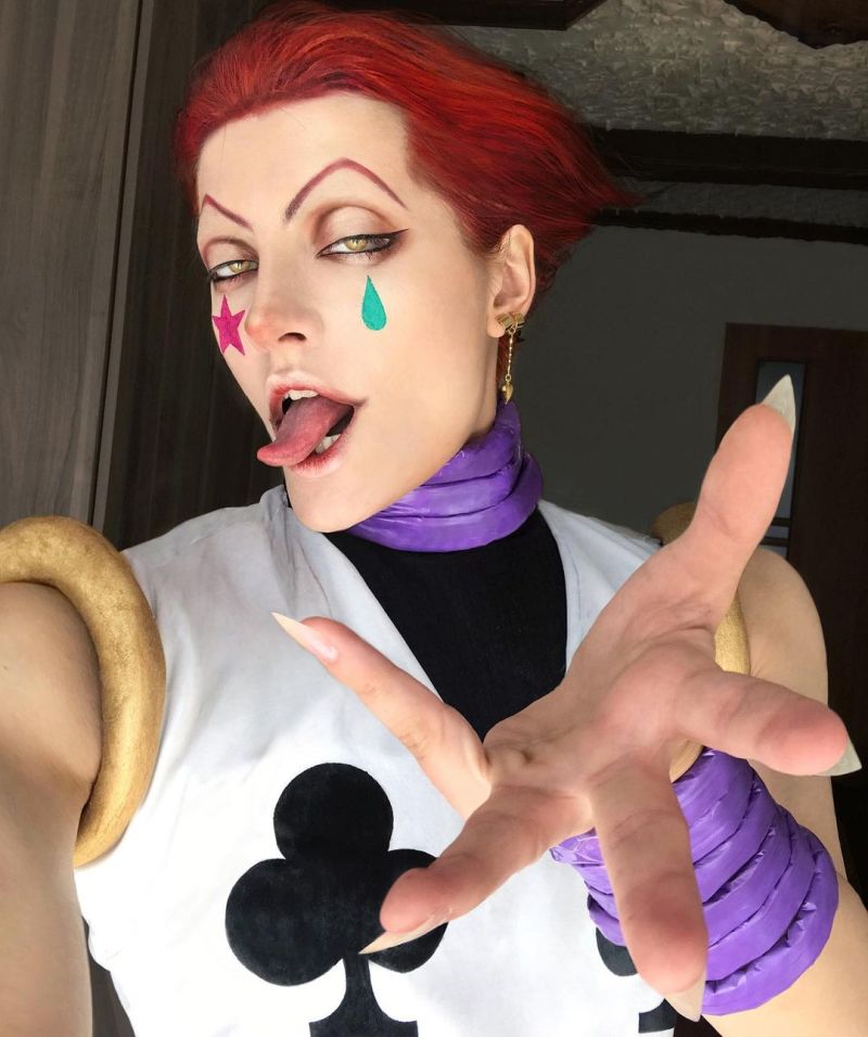 在IG帳號上放上各種精彩cos作品的「Villain Lady」,有著深邃立體的五官、不科學的身材、纖細腰線等,完美還原西索的桀傲不遜卻又陰柔的詭譎氣息!除了招牌的紅色頭髮、超高的挑眉、眼下的星星與水滴花妝等特徵造型,細長的眼睛和尖挺的鼻子加上笑容和吐舌等表情展現出與隱隱的妖媚和邪氣,更是宛如西索本人走出漫畫~