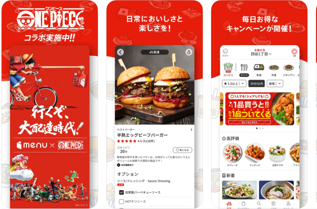 日本訂餐的手機應用程式「menu」宣布與日本超人氣動漫作品《航海王》展開合作,推出線上訂餐特設的「航海王餐廳」,以原作中出現的趣味美食為特色,讓各位粉絲用手機就能夠輕鬆點餐在家享用美味料理。服務從 2022 年 3 月 1 日啟動,