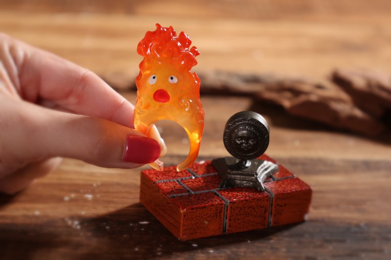 新系列「KAZARING」,將吉卜力作品中的角色與流行休閒飾品結合,設計出既可以輕鬆配戴、也可以作為可愛擺飾的新型配飾~期待已久的首彈「霍爾的移動城堡 KAZARING 卡西法」,以半透明材質打造出卡西法的火焰造型戒指,戴在手上仿彿指間閃耀著火光~六種款式包含有經典的煮早餐、生氣的熊熊火焰、增添木材...等各種劇中生動的場景~另外,每款皆附有質感的底座,做為擺飾時,可以還原卡西法在壁爐與炭火上的模樣!