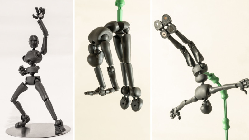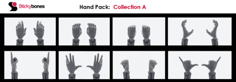 Stickybones 是一款由美國設計、製作的可動人偶,使用美國專的關節運動系統(Pretension Socket System),每個球型關節都可以繞軸旋轉,實現極精細的動作效果,展現超越人體的可範圍,滿足各種充滿想像力的姿勢;在腳和手部內置有磁鐵,能夠穩固維持各角度的姿勢,搭配專屬配件(底座)就可以賞玩出對抗重力、漂浮在空中的極限姿勢!