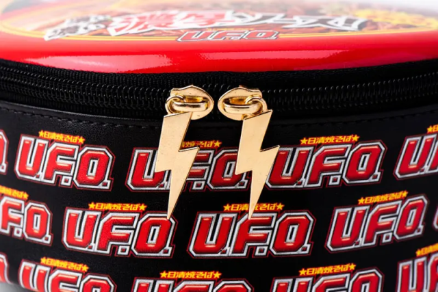 這次推出的「日清U.F.O炒麵」碗狀造型隨身包,以泡麵商品的小尺寸與正常尺寸原比例製作,推出兩款大小給大家選擇。其中最讓人驚豔的就是打開後內含有炒麵所使用的濾水設計,作為內袋使用,包包本體設計上也採用閃電造型的拉鍊環,看似簡單卻藏有細節。