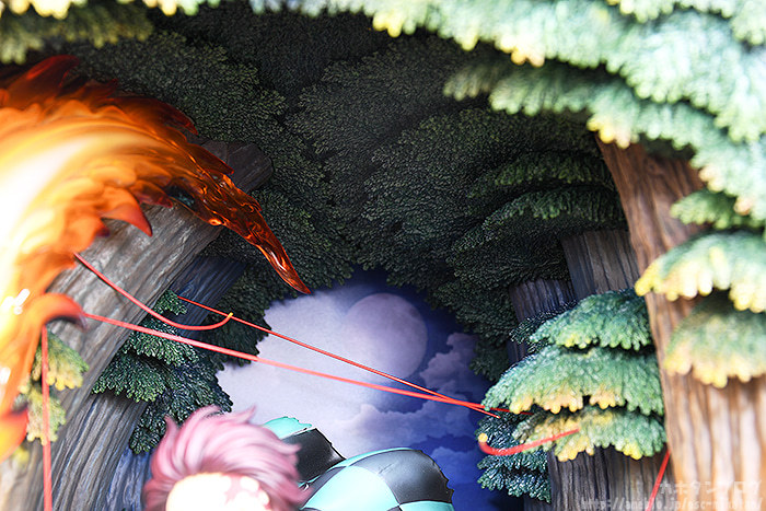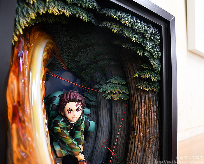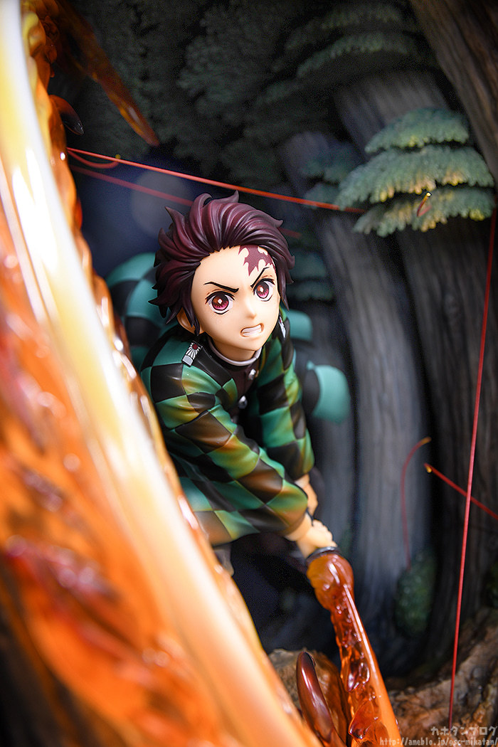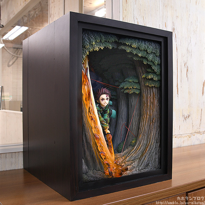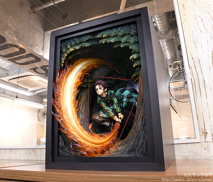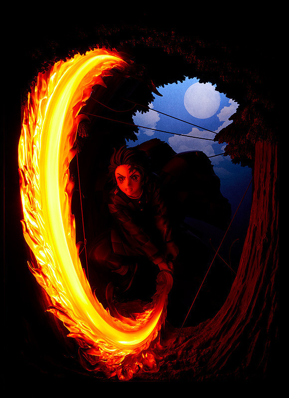 本次GSC就將炭治郎首次使出火之神神樂圓舞的紀念性瞬間以特別的形式立體化!「竈門炭治郎 火之神神樂 圓舞」模型,採用連展示櫃都一並附給你的箱型空間,整體尺寸約寬 27 深 31 高 36 公分,徹底還原劇中的掛著月色的夜間樹林場景,在奇中設置一般模型難以呈現的"累的絲線",炭治郎極度躍動的拔刀架式、凜然專注的神情,搭配大魄力、具備色彩層次的火焰特效零件環繞環繞,展現與以往模型不同的境界!
