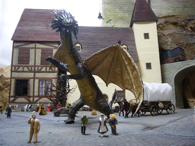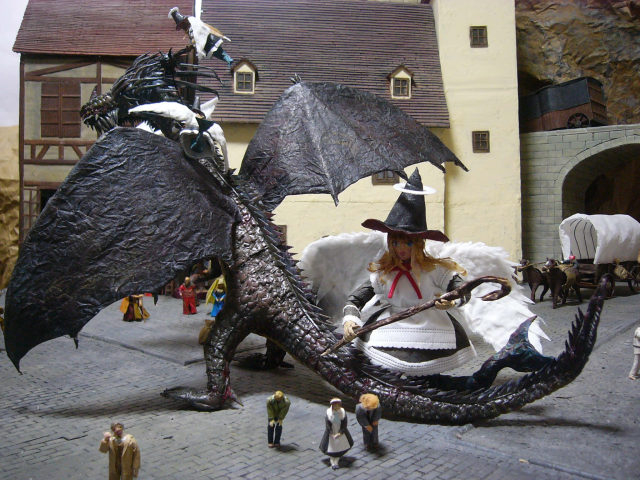 當然只有本體好像不夠有魄力,配合推主製作的景觀小物與建築,看起來是不是感覺有那種動畫出現的龍形生物壓迫感了呢 ~