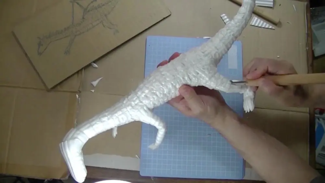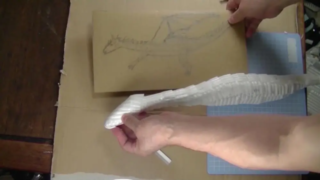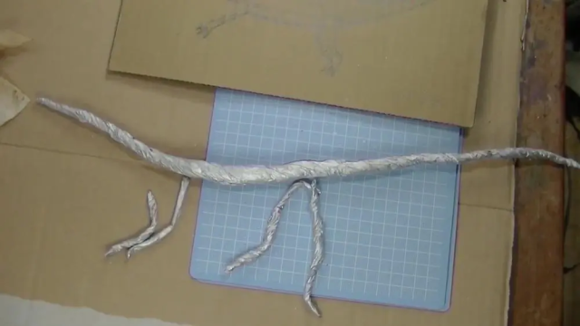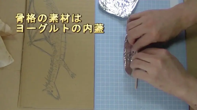 可以看到他用包裝用的錫箔紙扭成一條條的,試圖將自己繪製的巨龍身軀簡單的雛型製作出來。