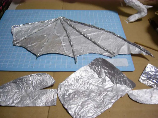 接下來用錫箔紙來製作龍的翅膀 !