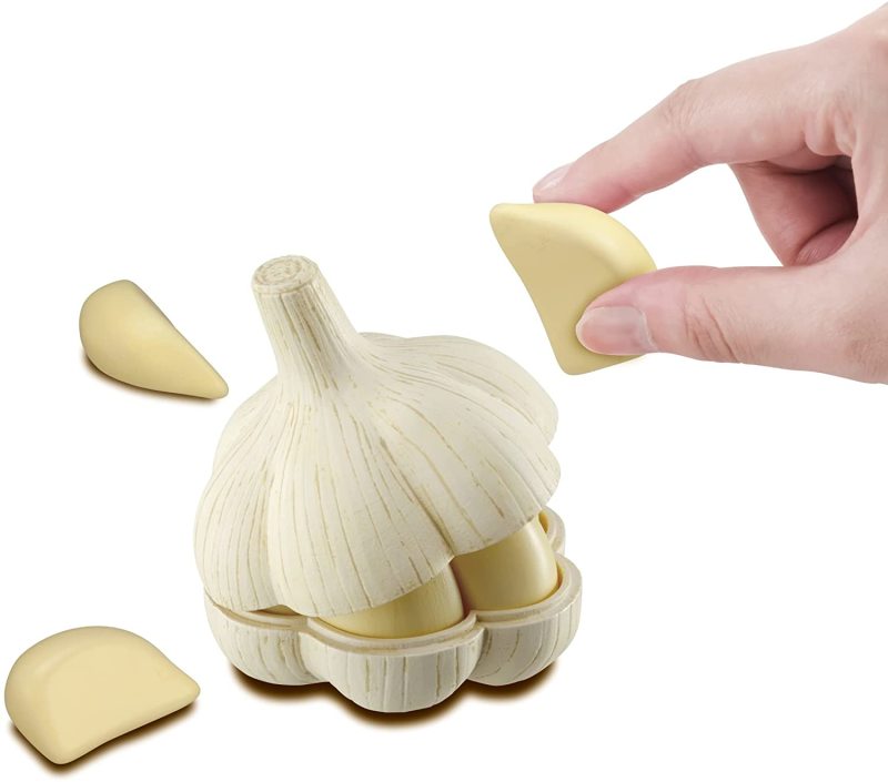 首彈的「解體拼圖Lite 01 大蒜立體拼圖」,共有 8 個組合零件,還原蒜頭外皮包覆著六塊蒜瓣的造型,而除了刻劃出大蒜的特徵之外,內部每個大蒜的形狀也略有不同,必須上下外皮完美貼合才是真正完成唷!