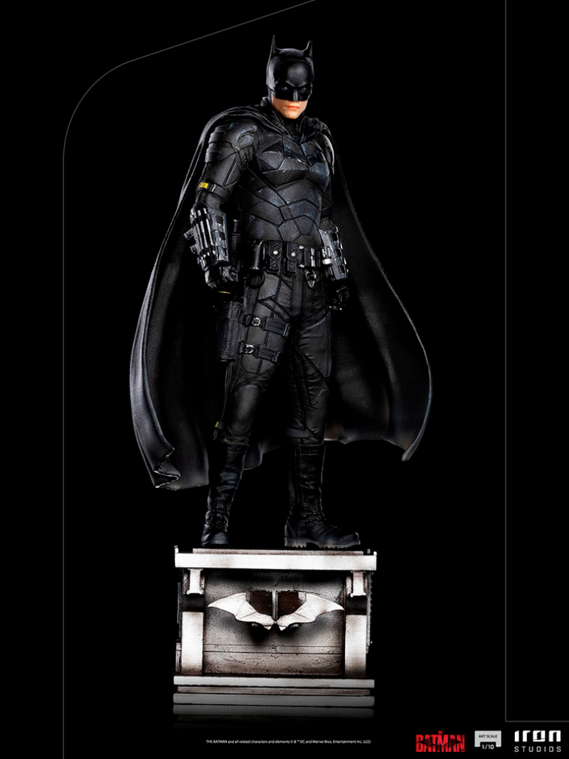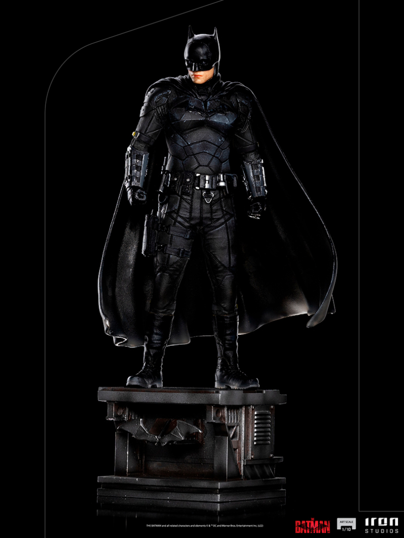 「Art Scale 蝙蝠俠 1/10比例限量雕像」,尺寸為長寬高 5.1 × 4.7 × 10.2 英吋,以蝙蝠俠站在總是陰雨的高譚市大樓上為造型設計,打造低頭注視著這城市不起眼的陰暗小巷、在罪犯心中施加恐懼的蝙蝠俠場景...。根據電影設定考究還原蝙蝠裝厚重的防彈盔甲與腰間道具等細節,並細膩刻劃出面具的皮革質感、身上的金屬配件等不同材質;羅伯派汀森伶有棱有角的下巴線條和眼神也有相當的還原度!