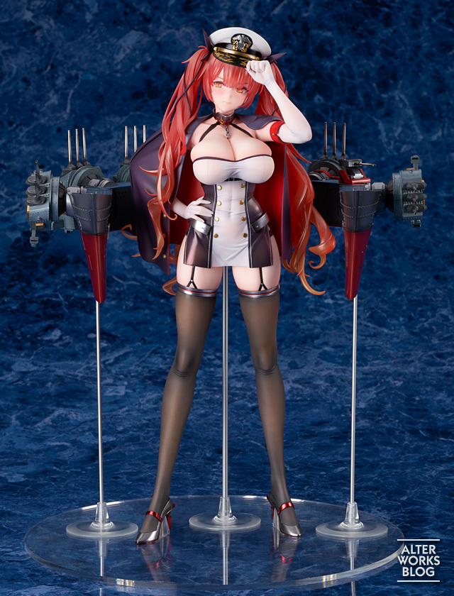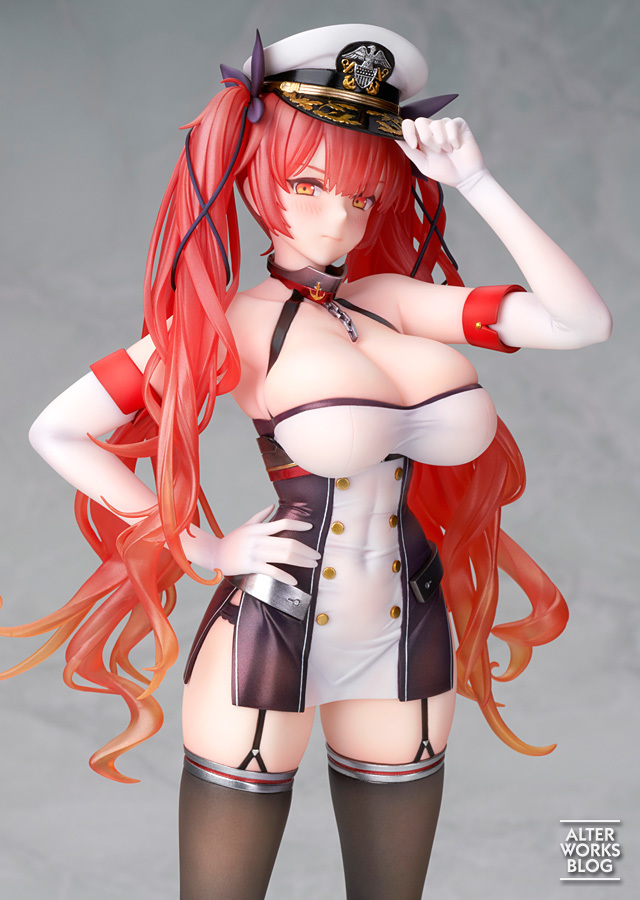 ALTER「火奴魯魯 1/7比例模型」將遊戲中的預設造型立繪立體化,尺寸全高約 26 公分,將火奴魯魯雙頰泛紅、既強氣又代有嬌羞的魅力表情徹底重現,頭髮零件採用透明零件製作,極魄力的胸部裝甲與吊帶襪等處,刻劃出被服裝邊緣擠壓的超豐滿肉感!緊緊包覆身體的服裝完全嶄露姣好的身材線條,並以噴塗表現出若隱若現的透膚色澤;一雙修長雙腿與背後的吸睛亮點,讓人從各角度欣賞都能感受其魅力~