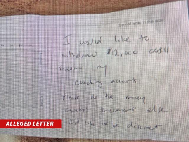 過程中他沒有開口跟行員說話,也沒有其他互動,僅僅是遞給她一張紙條,上面寫著:「我想從我的支票戶頭中提取 12,000 美元現金(約 34 萬元台幣)。請在別處點鈔,我想保持低調。」
