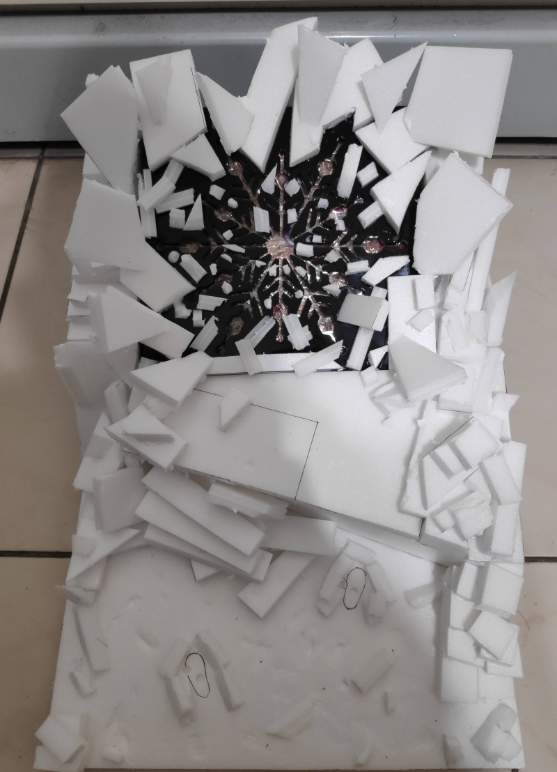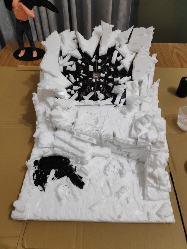 在拼湊出岩石的位置圖後,下一步就是將珍珠板燒出不規則感。