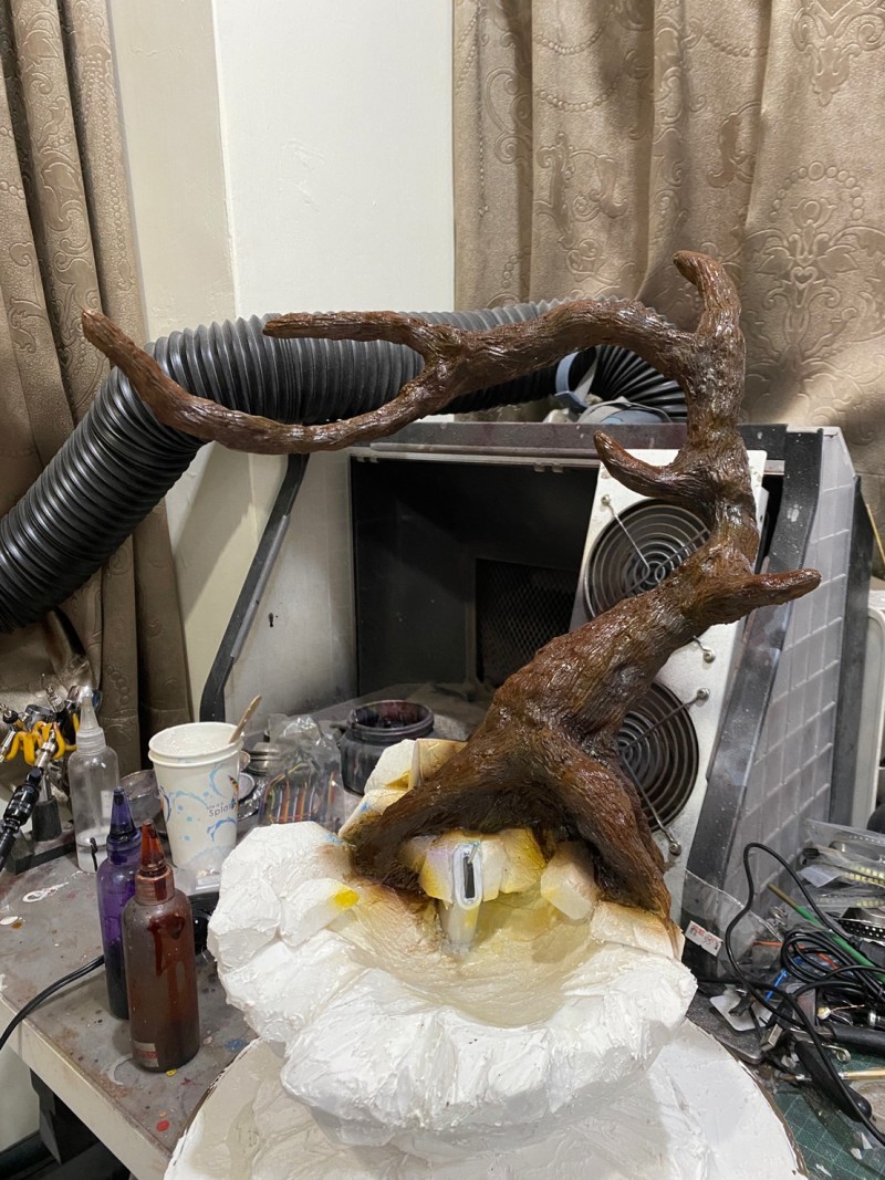表面鋪滿塑鋼土並雕出木紋 塑鋼土真的超結實 超硬啊!