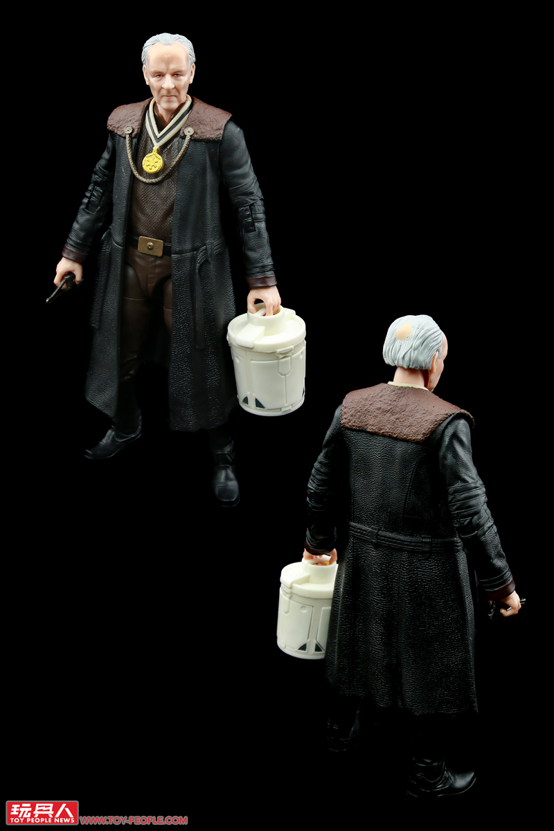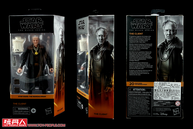 ▼曼達洛人No. 20「客戶」(The Client),來自《曼達洛人》,本名不詳,表面上以稀有的貝斯卡鋼(Beskar)為代價雇請曼達洛人丁·賈林尋找神秘的「孩子」(The Chlid),實則為帝國殘黨的吉迪恩星區長(Moff Gideon)工作,意圖找到孩子後「提取必要之材料」,最終被殘忍無情的吉迪恩當作棄子,被其手下的帝國風暴兵(Stormtrooper)所射殺。本次的黑標人偶是他罕見的實體化作品,高度還原了德國導演韋納·荷索(Werner Herzog)在劇中扮演時的樣貌。