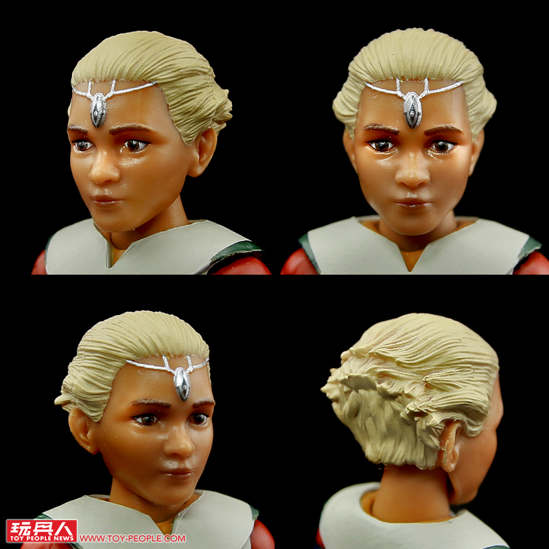 ▼頭雕採用了前期的卡米諾造型:頭髮後梳並配戴前額的墜飾,五官也同樣以相片寫實技術印刷製成。