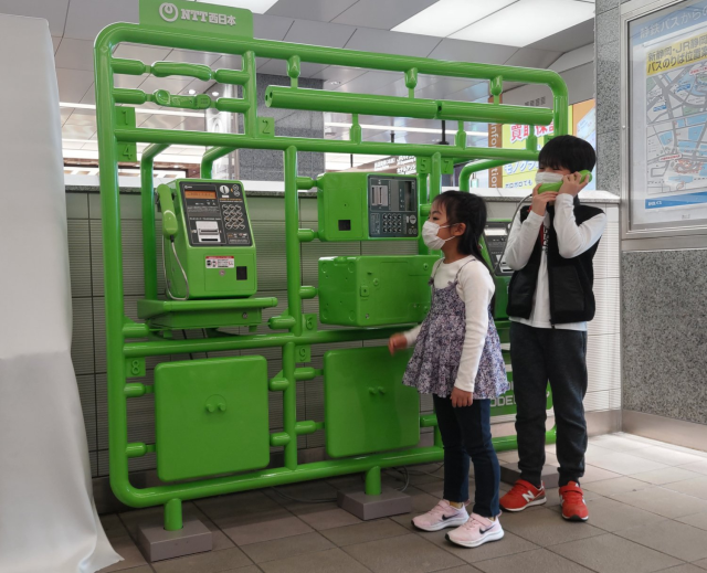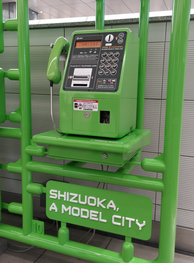 在3月13日,靜岡市政府在JR新幹線的靜岡車站北口設置了「模型框電話亭」,外型就如之前的郵筒一樣,是個被模型框框住的公共電話亭,除了框架兩旁的電話是實際可使用的,其他設計就都按照模型玩具那樣,將零件一個個分裝固定,要想拿下來得拿個巨大的模型鉗剪下呢。