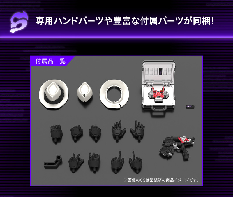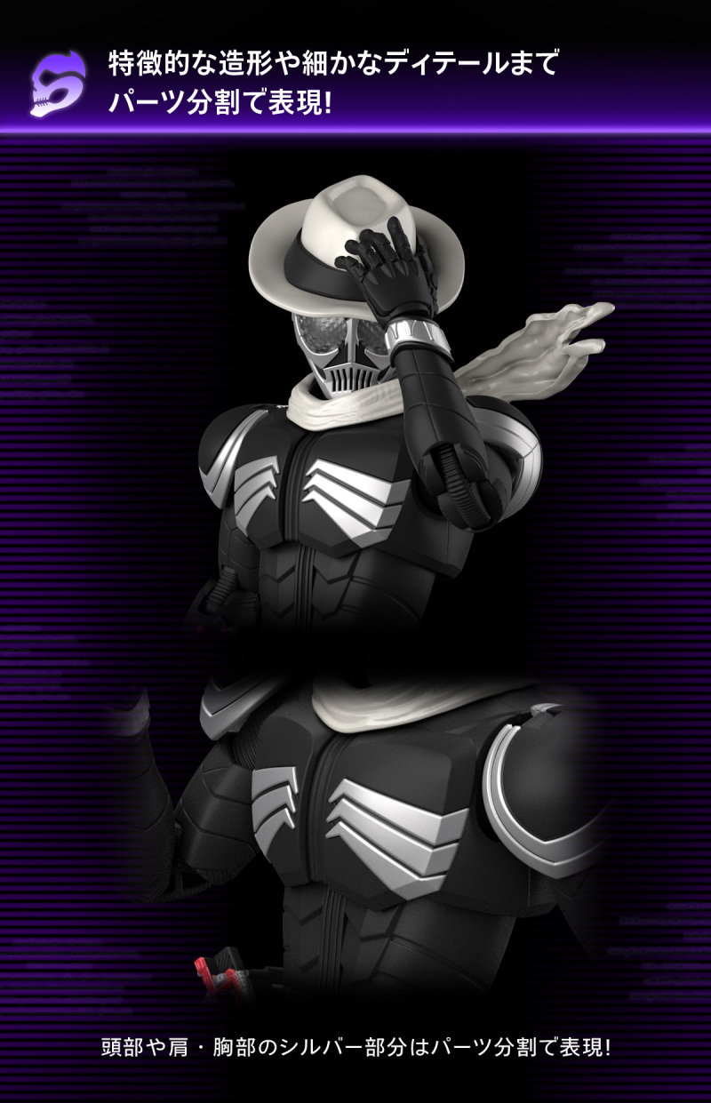 此次商品化的是亞樹子的父親、翔太郎的偵探師父鳴海莊吉生前所變身的「假面騎士SKULL」,運用多樣新規零件製作而成,頭目、肩部、胸部的銀色採用獨立分割零件表現,更再現特徵的領巾與帥氣帽子,帽子可替換兩種零件再現一般造型與帽緣遭切割的造型。
