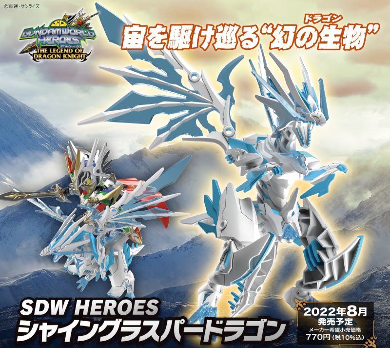 由日本 BANDAI SPIRITS 公司 HOBBY 事業部推出的《SD鋼彈世界群英集》系列組裝模型今日發表了出自騎士世界外傳《SD 鋼彈世界群英集 龍騎士傳說》的最新商品「SDW HEROES 閃光霸者龍」預計於 2022 年 08 月發售的消息。