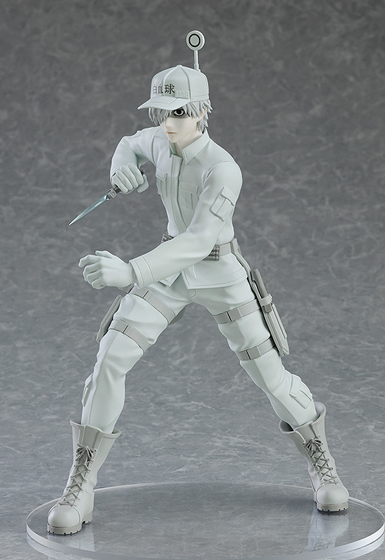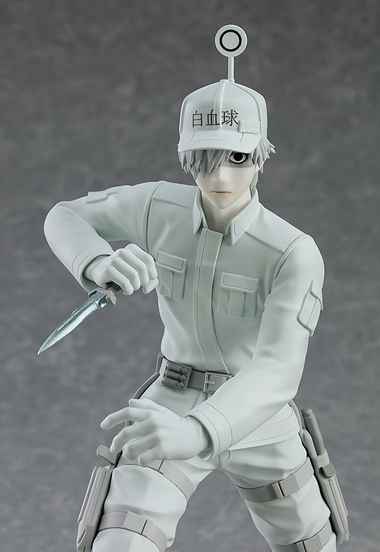 「POP UP PARADE 白血球」高約 19 公分,再現了灰白主調、身穿制服且配掛多把匕首的外觀,帽子上的「白血球」字樣、「O」圖形的感應器、編號 1146,以及蓋住右眼的瀏海都考究還原,手持匕首、微微壓低重心的備戰姿態相當帥氣!雖然整體色彩並不多,不過依舊表現出因動作產生的服裝皺褶,並利用陰影塗裝提升各處的立體感。