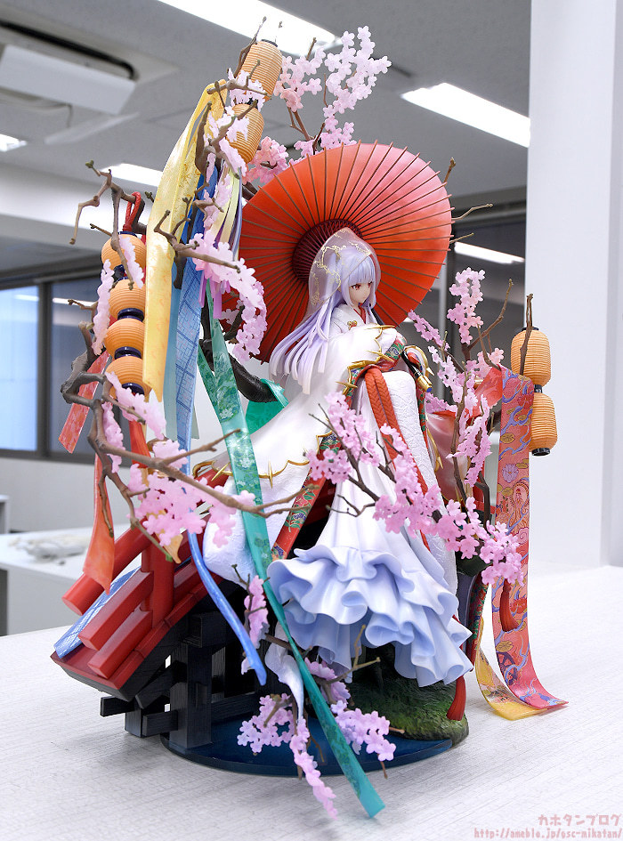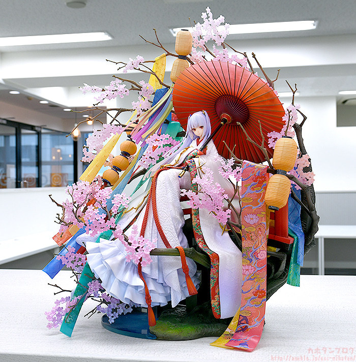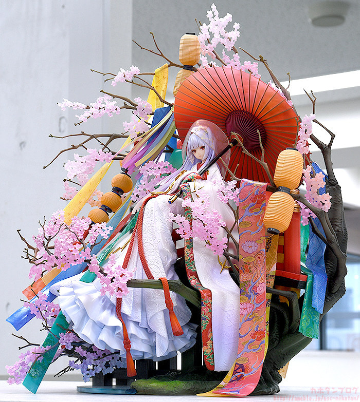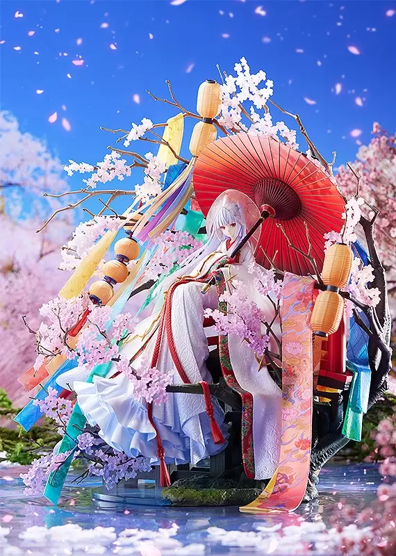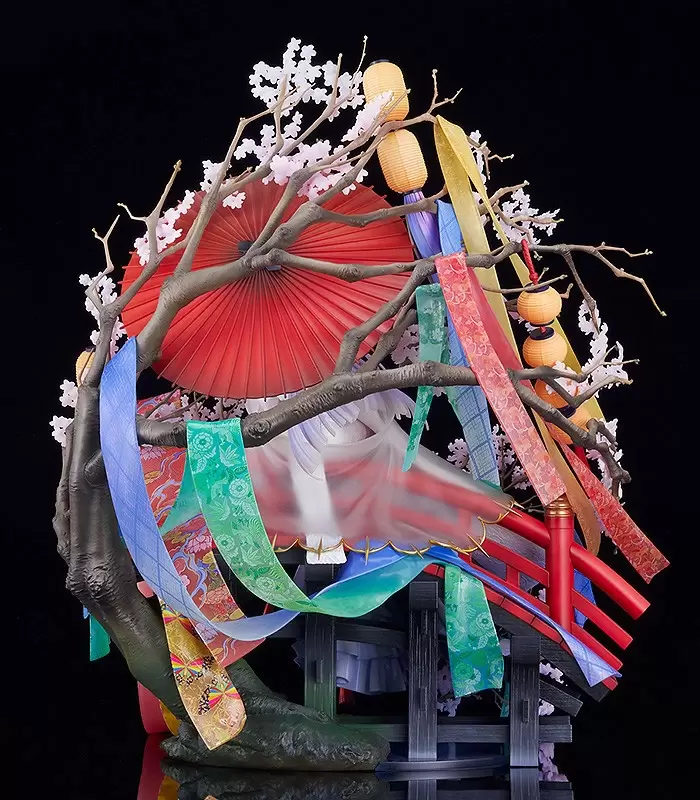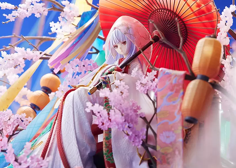 第二彈「Illustration Revelation 彼岸的花嫁」無比例模型,將日本人氣繪師藤原(@藤ちょこ-fuzichoco-)於 2020 年發表的個展《彩幻境》主視覺插畫化為立體模型,尺寸全高約 37 公分,還原倚在彼岸世界的美麗新娘,身穿著豪華優雅的白無垢和服、撐著紅紙傘,周圍還繞著盛開的大櫻花樹,華麗綢緞、提燈隨風飄動的唯美場景...目不暇給的滿滿細節忠實打造!
