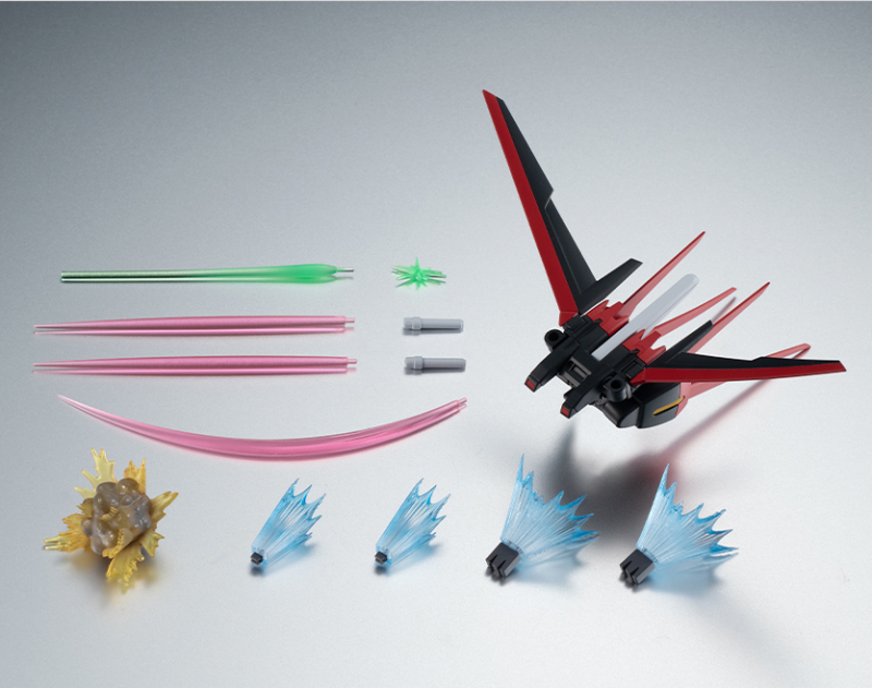 多樣的特效零件則能再現光束步槍射擊、盾牌被擊中爆炸、翔翼型攻擊者背包噴嘴推進,以及揮擊光束軍刀的彎曲光束場景,把玩出動畫中的各種經典戰鬥姿態。