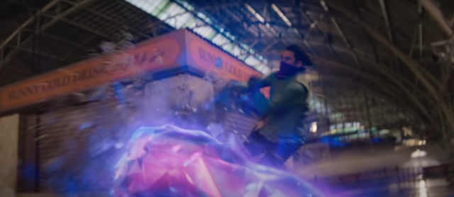 2. 漫畫特效 因為卡瑪拉克汗時常做白日夢,所以在她眼裡時常會出現幻想的漫畫風字體特效。在影視作品中使用漫畫元素這點,我們曾在包括《蜘蛛人:新宇宙》中看過,甚至更早李安版《綠巨人浩克》也有使用漫畫分鏡元素。但最早將這個點子在影視中實現的,是1966年的《蝙蝠俠》電視影集。