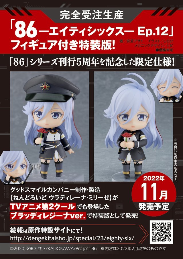 日本 GOODSMILECOMPANY 旗下種類超過千款的可動人偶商品「黏土人」系列,在以輕小說改編 TV 動畫《86-不存在的戰區》為主題的芙拉蒂蕾娜·米利傑後,隨著動畫第二季的登場,再度推出「黏土人 芙拉蒂蕾娜·米利傑 鮮血女王Ver.」,參考售價為 5,900 日圓,預計將於 2022 年 11 月發售~
