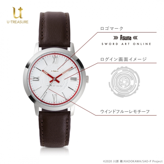 手錶本以設計上,以劇中亞絲娜所穿著的紅白色服裝為概念設計,秒針採用亞絲娜所持有的疾風擊劍(風花劍,ウインドフルーレ) 為造型,手錶錶帶採用真皮牛革製成,並使用日本製石英機芯。錶面底部還有著鋼鐵浮游城《艾恩葛朗特》中的刻印,中心也有著 ASUNA 的英文字樣,簡單樸實不失特色。