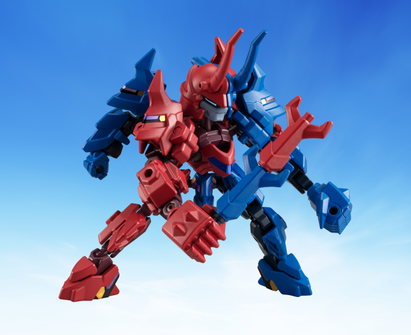 此外上述的 DEMON R-GEAS、DEMON L-GEAS 兩機更具備「TWIN CROSS UP」合體機構,能合體為左右非對稱造型的皇帝機『DEMON DEATHGEAS』,互補彼此的缺點且不像 UNICORN LIGHTGEAS 那樣容易暴走,徹底發揮兩機真正強大的實力!