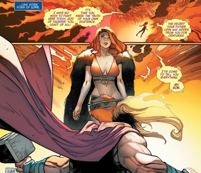 於是,目前兩部主要有描寫到索爾的連載對於祂的生母身分究竟為何似乎是給出了完全不一樣的答案,這個彼此矛盾的狀況究竟要到何時才能說清?漫威漫畫的編劇們和編輯何時才能給出答案?還有待日後發展了。
