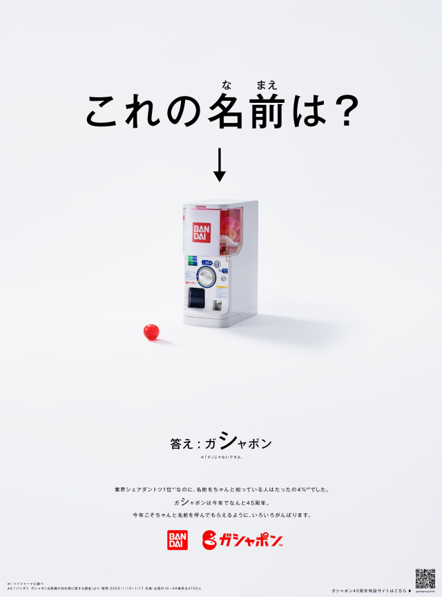 這個結果也讓萬代自家非常驚訝,在近日也在日本各地架設廣告看板,告訴民眾「ガシャポン 」 這個答案,也在報紙上登出廣告。