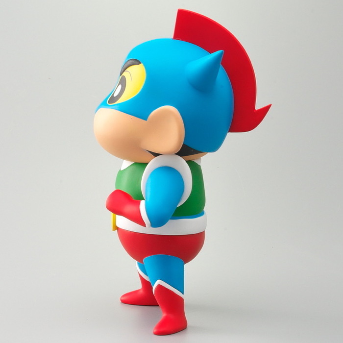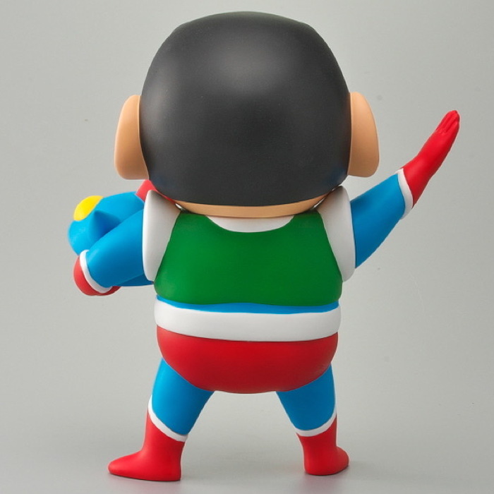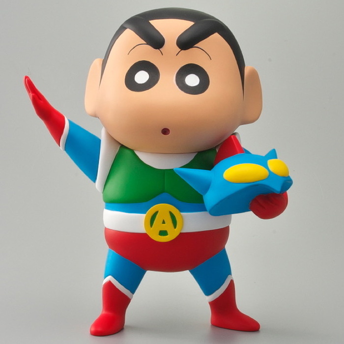 在小新最愛的電視節目《動感超人》中登場的同名主角「動感超人」是小新的偶像,絕技「動感光波」、浮誇的爽朗笑聲是招牌特色,熱愛模仿動感超人的小新,除了身材之外,動作跟笑聲可說是超高度重現!本作即是在 23~26 公分的尺寸中,將穿上動感超人服裝的小新高度還原,再現了戰衣的鮮豔配色、濃濃的眉毛,與圓圓的臉蛋,版本A 是小新高舉右手、比出動感超人帥氣姿態的造型,版本B 則是小新將頭盔拿在手上的樣子,兩種版本都超級可愛!