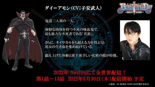 由串流媒體Netflix所翻拍的80年代經典奇幻青年漫畫《BASTARD!! -暗黑的破壞神-》(BASTARD!! -暗黒の破壊神-),在前些日子釋出了長達一分鐘的預告影片與聲優名單後,今日稍早也終於正式公開了該部動畫的開播時間,