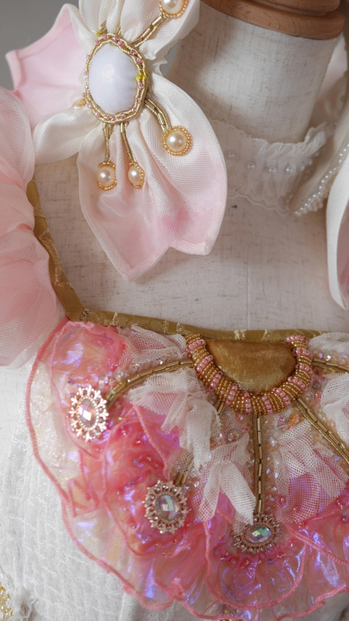 整體都是以櫻花色和白色為主色,造型非常華麗,蓬鬆的裙子也還原得十分到位,而且不只服飾本體,就連手套、鞋子也準備齊全,這種完成度簡直是大師級別了,這套服裝在推特上也引來許多網友討論並獲得大量的好評,依我看這應該就是現實版的知世了吧XD
