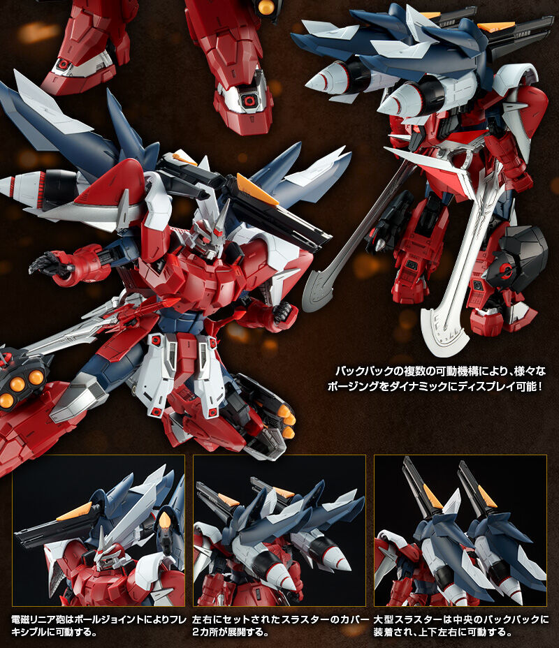 「MG 1/100 劍鬥士型基恩(暫譯)」沿用 2021 推出的一般版基恩套件,運用大量新規零件再現全身增設裝甲與全新專用武裝,背部大型推進器與線性電磁砲具備多處可動機構,能夠調整砲管與推進器的方向。兩把巨大的處刑者之劍也重現劍身刻紋細節。