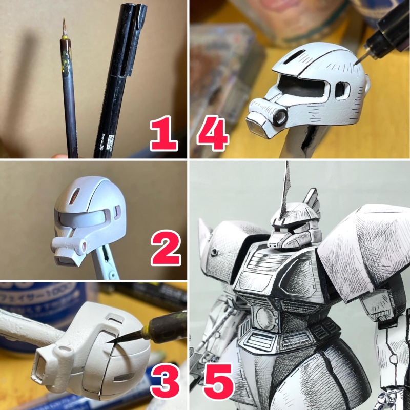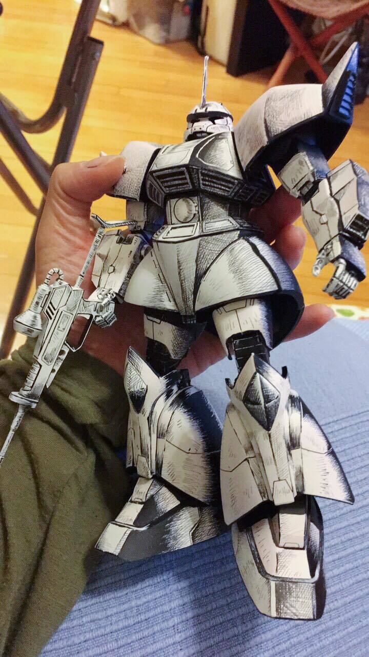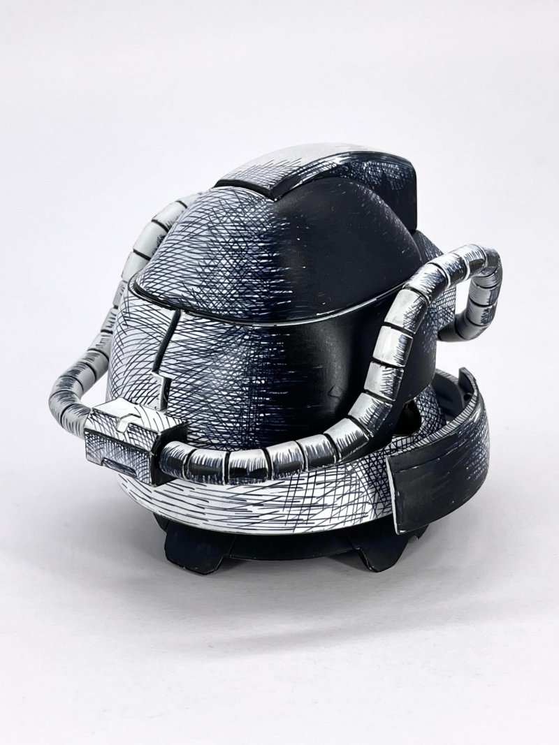創立臉書社團「育模團」的模型玩家 Sing Chui,日前分享了將「EXCEED MODEL DOM HEAD YMS-09 德姆原型機」、塗裝成漫畫風格的作品,在約 65mm 的掌中尺寸中,採用 2D 塗裝手法——先施以白色底漆,用面相筆描角位粗線,再使用油性繪圖筆畫幼線、打網…,營造出漫畫般的筆觸與細結線條!鮮明的對比讓整體相當搶眼,看來就像在紙上畫出來的一樣~