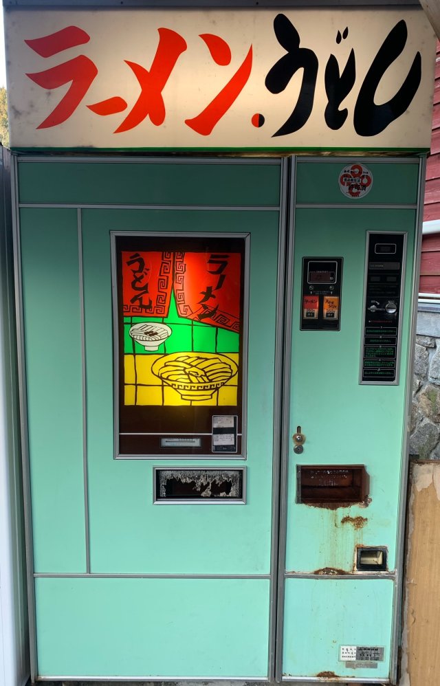 ▼古早味的拉麵販賣機,因為年久生鏽,倒是很有恐怖片的感覺......