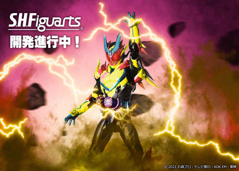 「S.H.Figuarts 假面騎士REVICE」目前已公開上色試作品,以透明零件再現結合 REVI 與 VICE 的兩種色彩複眼,全身銳利尖刺、掛上 Thunder Gale Vistamp 的 REVICE DRIVER 腰帶皆有精密造型,並透過塗裝與印刷再現全身鮮艷的色彩與閃電紋路。