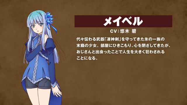 除了先前公布的子安武人配音舅舅之外,近日宣布的還包含;主角貴文 (CV: 福山潤)、藤宮 (CV: 小松未可子)、妖精 (CV: 戸松遥)、梅貝爾(メイベル,CV : 悠木碧)與愛利希雅(アリシア,CV : 豐崎愛生) ,看聲優陣容就可以瞭解製作方也非常重視本作,都是非常具有實力的卡司。