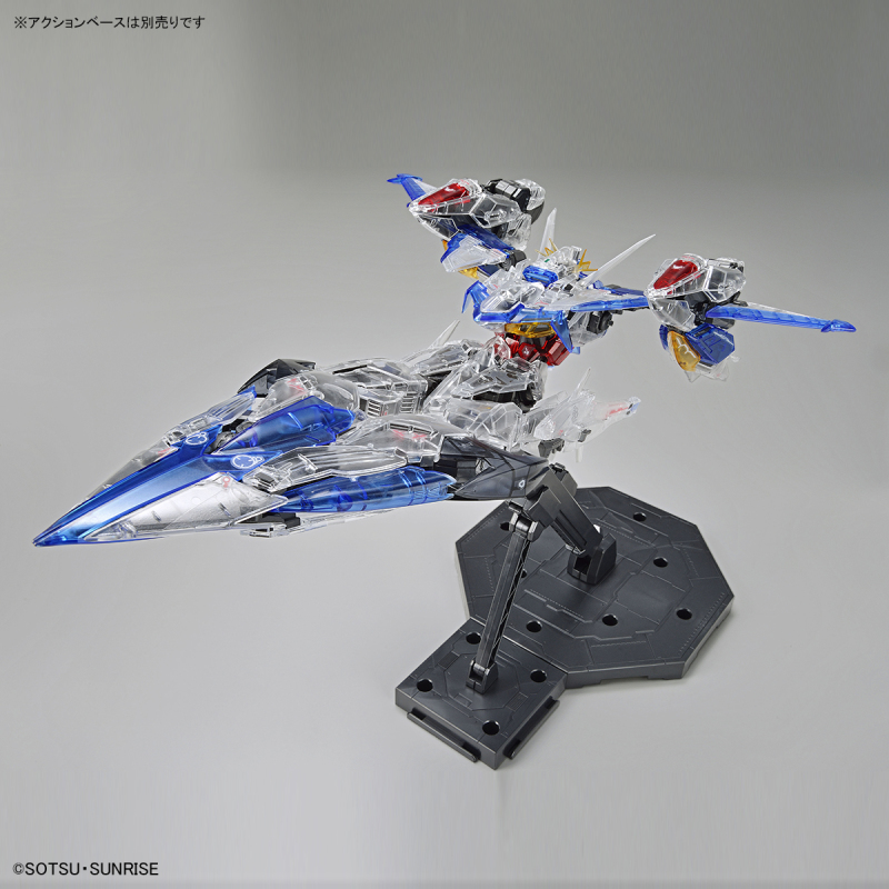 限定的透明配色版則將原本的白、藍、紅、黃、灰色外裝甲都替換成高透光度的透明成形色,骨架零件則使用近似槍鐵色的金屬色成形,在進行燈飾、夜光顏料等特殊改造技法時也能更加便利,呈現與一般鋼普拉不同的風格。