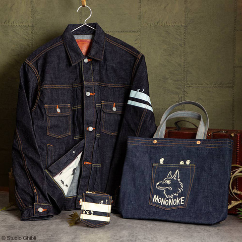 這次推出的聯名系列,包含;以 Momotaro Jeans 著名的岡山丹寧布料製成的外套、托特包與零錢包。結合《魔法公主》中的世界觀與角色形象,打造出質感上乘又具有職人精神的聯名商品。