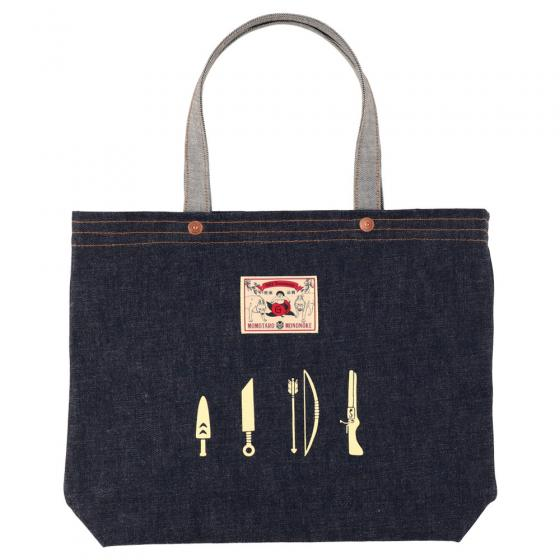 同樣以重磅原色丹寧布料製成,搭配牛仔褲的撞釘打造出具有獨特風味的設計。包包本體配有褲子口袋的設計,上面有著犬神的圖案,另一側則有著各種女主角小桑在劇中所持有的武器。包包本體大小為 W420×H370×D80mm ,是個適合日常生活使用的尺寸。